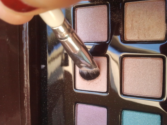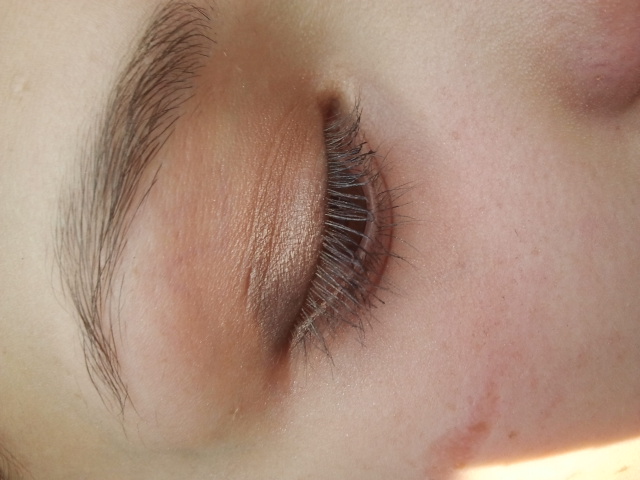 Ensuite je prends un beige/crème pour toute la paupière mobile, avec l’aide d’un pinceau plat.