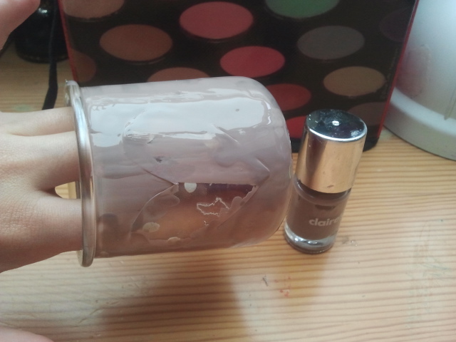 - «Peindre» le pot (si-dessous) avec le vernis que vous voulez (ici taupe clair)
