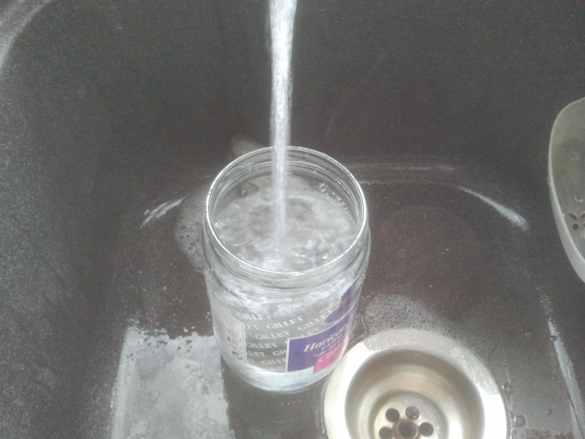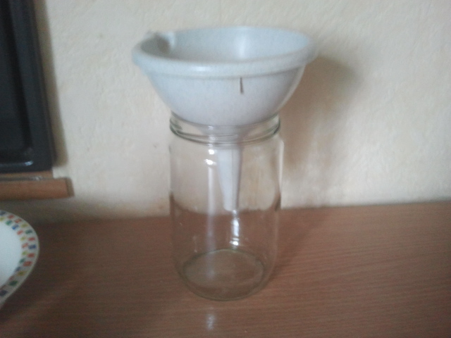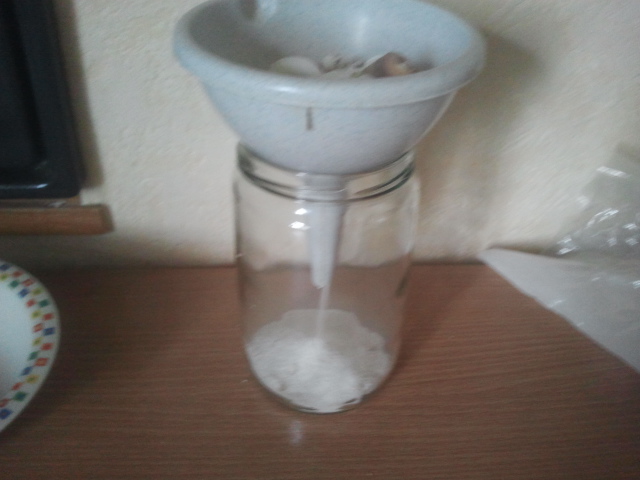 Après à l’aide d’un entonnoir je vide le paquet de sable dans le pot lavée et prêt.