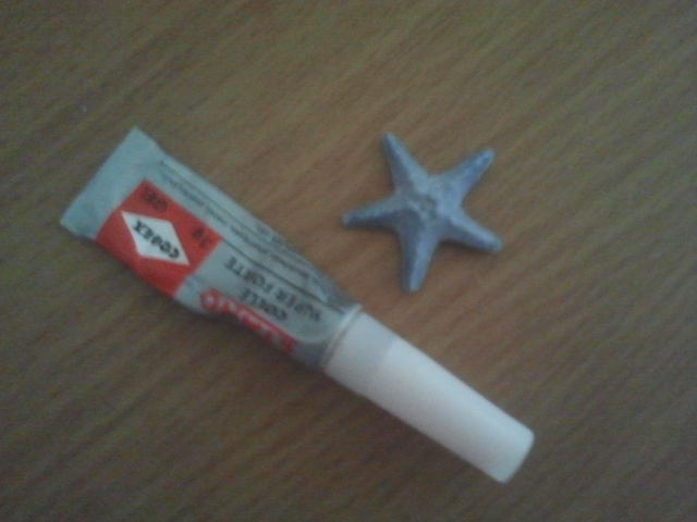 Pouraprès, je prends deux trois coquillages et à l’aide de super glue, je les colle sur l’extérieur du pots et je mets une ficelle
