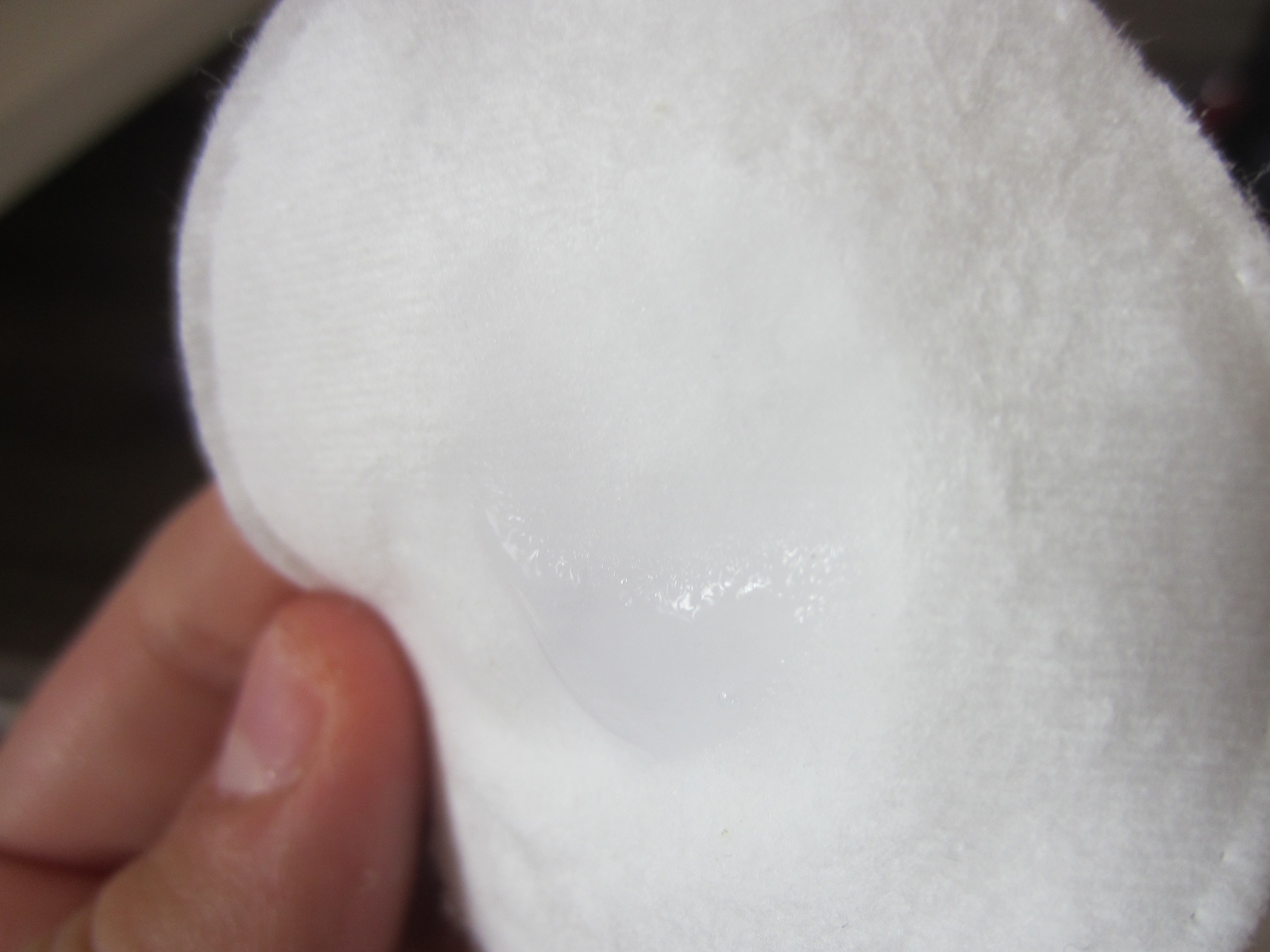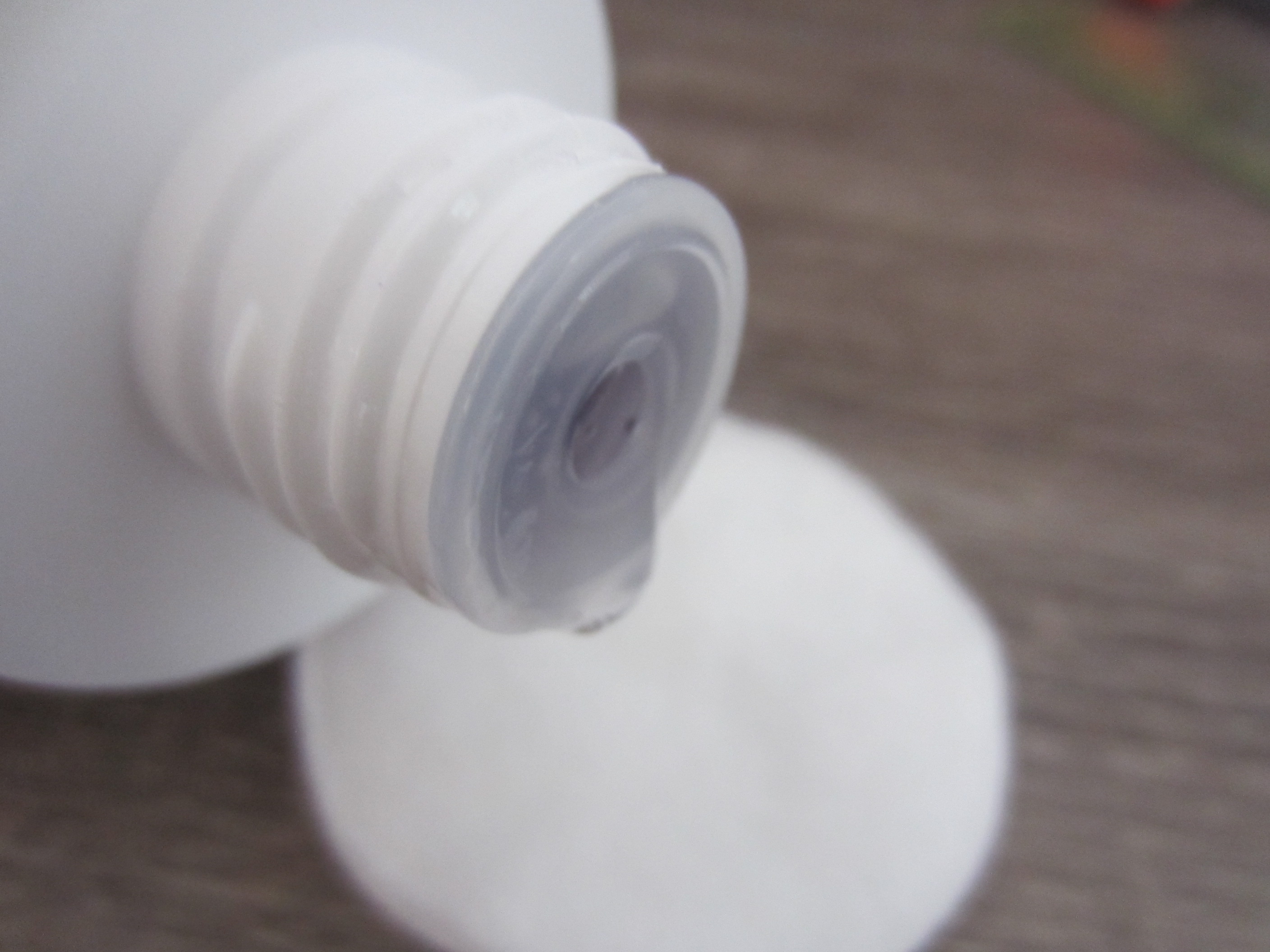 Puis j’applique 4 gouttes de démaquillant sur un coton, et je le place sur ma paupière et frotte.