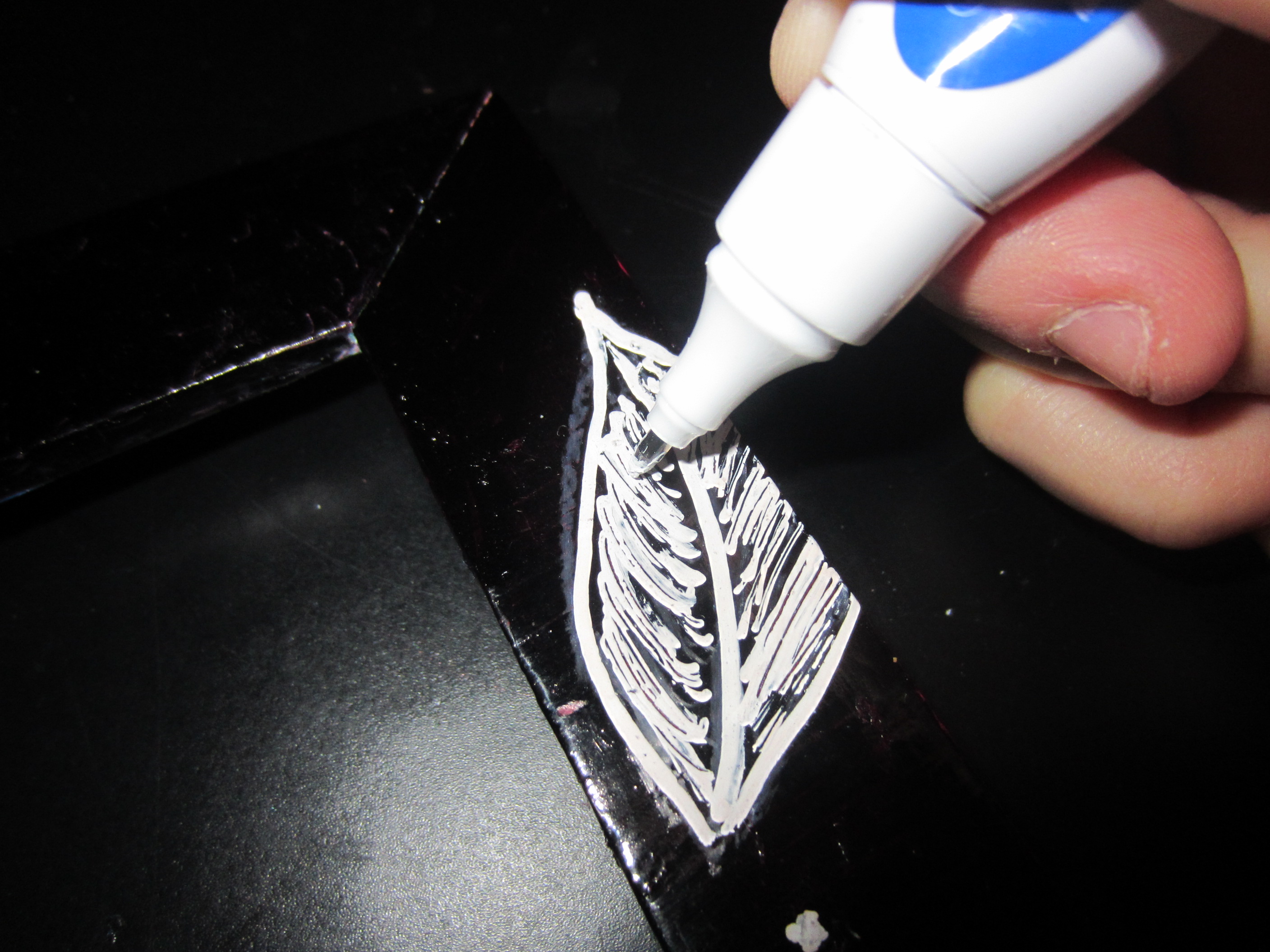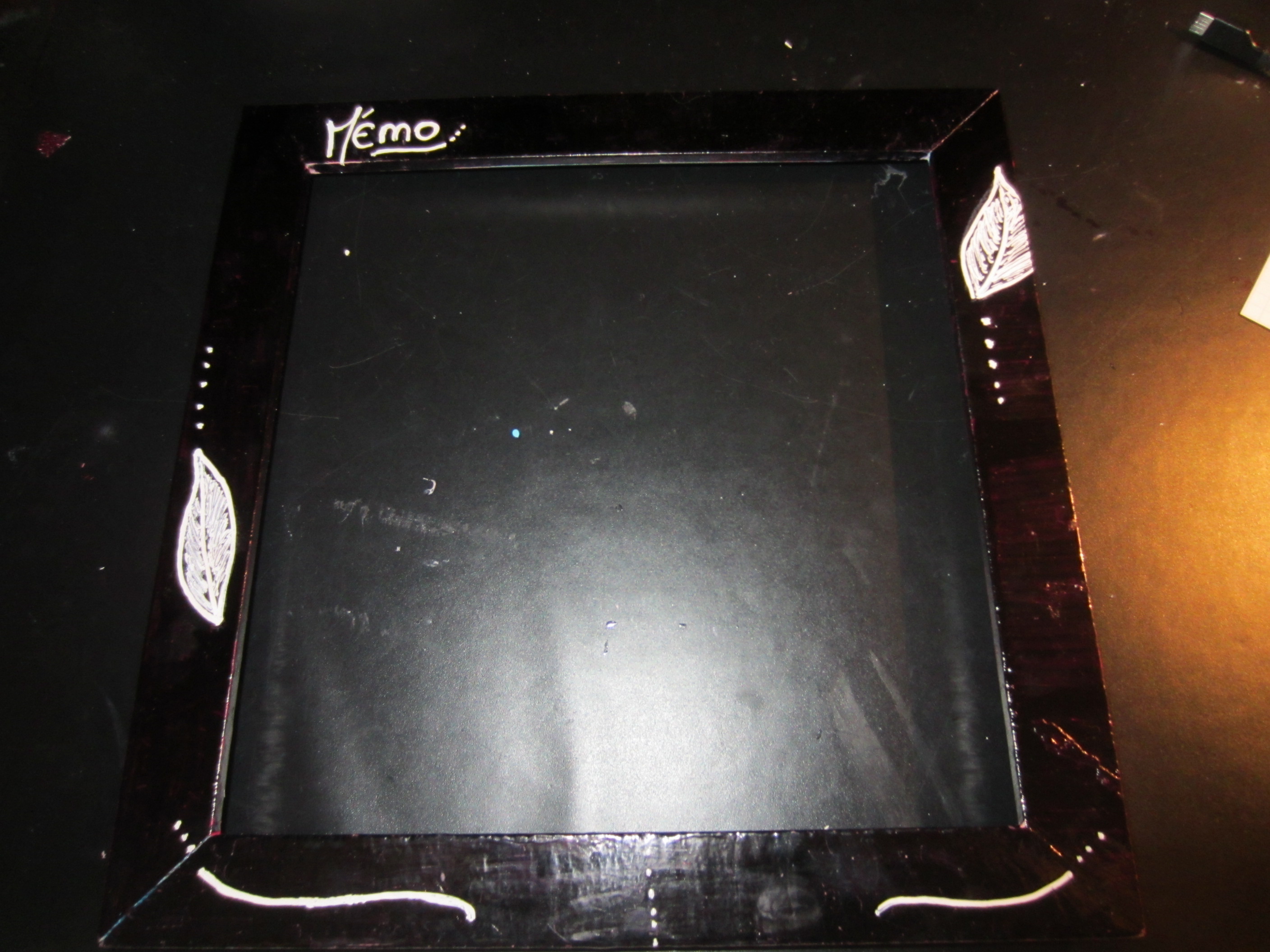 Ensuite avec le blanco, on décore le cadre quand c’est sec le noir :