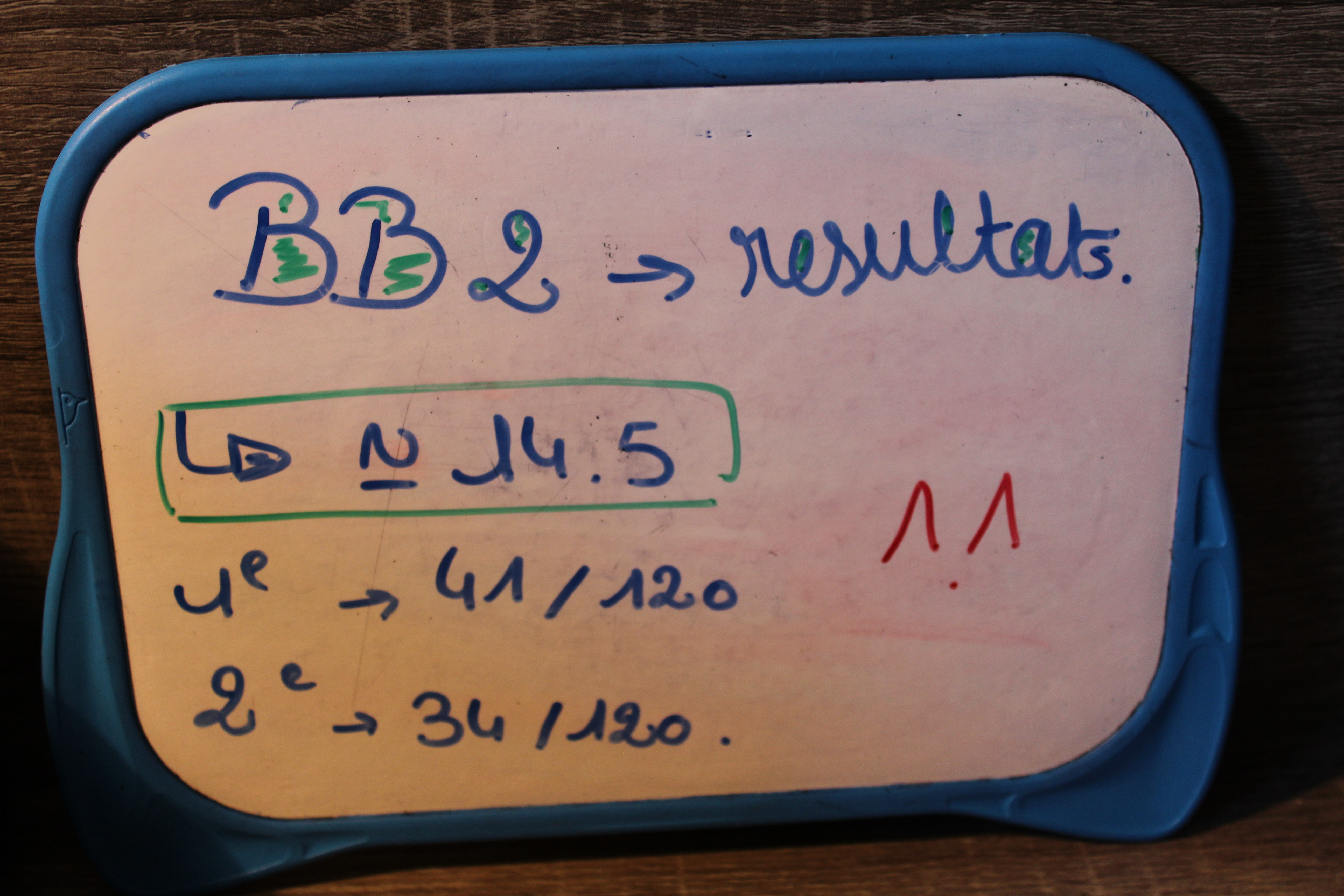 En mais j’ai eu les résultats de mes BB et j’ai eu :