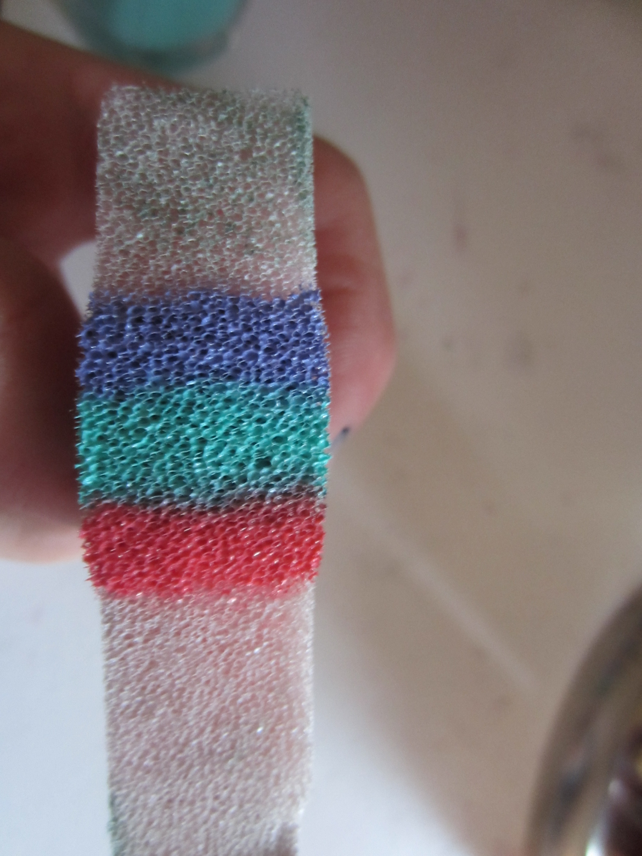 Ensuite tu fais le dégradé sur une éponge et hop hop hop tu l’ applique sur tes doigts !