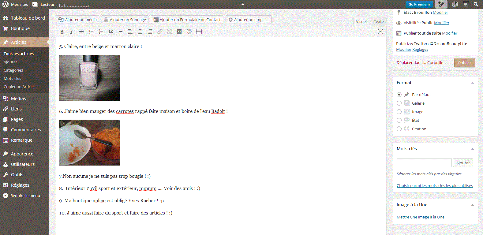 10. J’aime aussi faire du sport et faire des articles ! 🙂