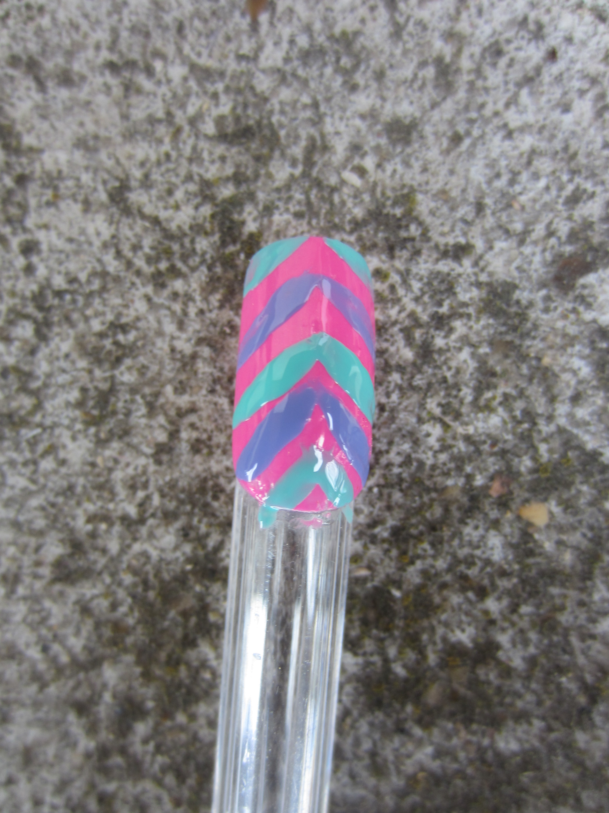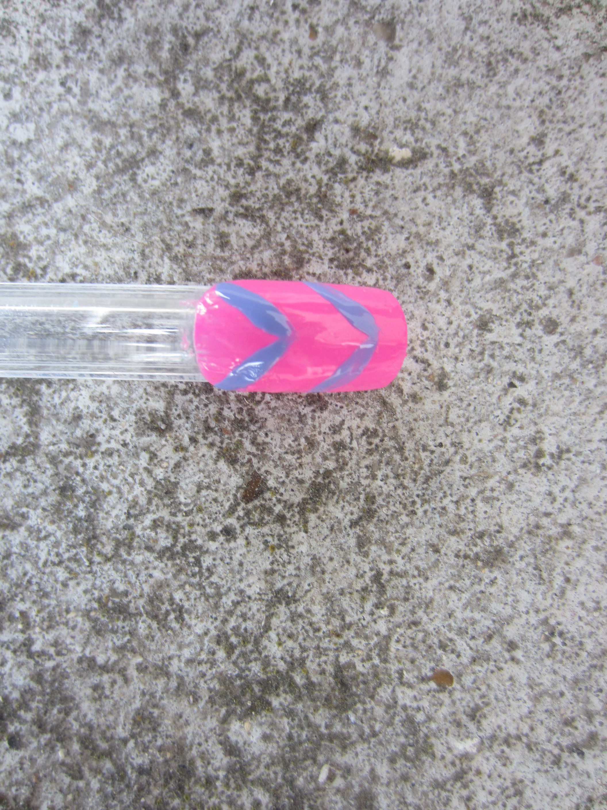 Ensuite on applique des petits traits formant une fleche, assez espacé les un des autres en violet (mais toi tu peus mettre du rose ou du vert )