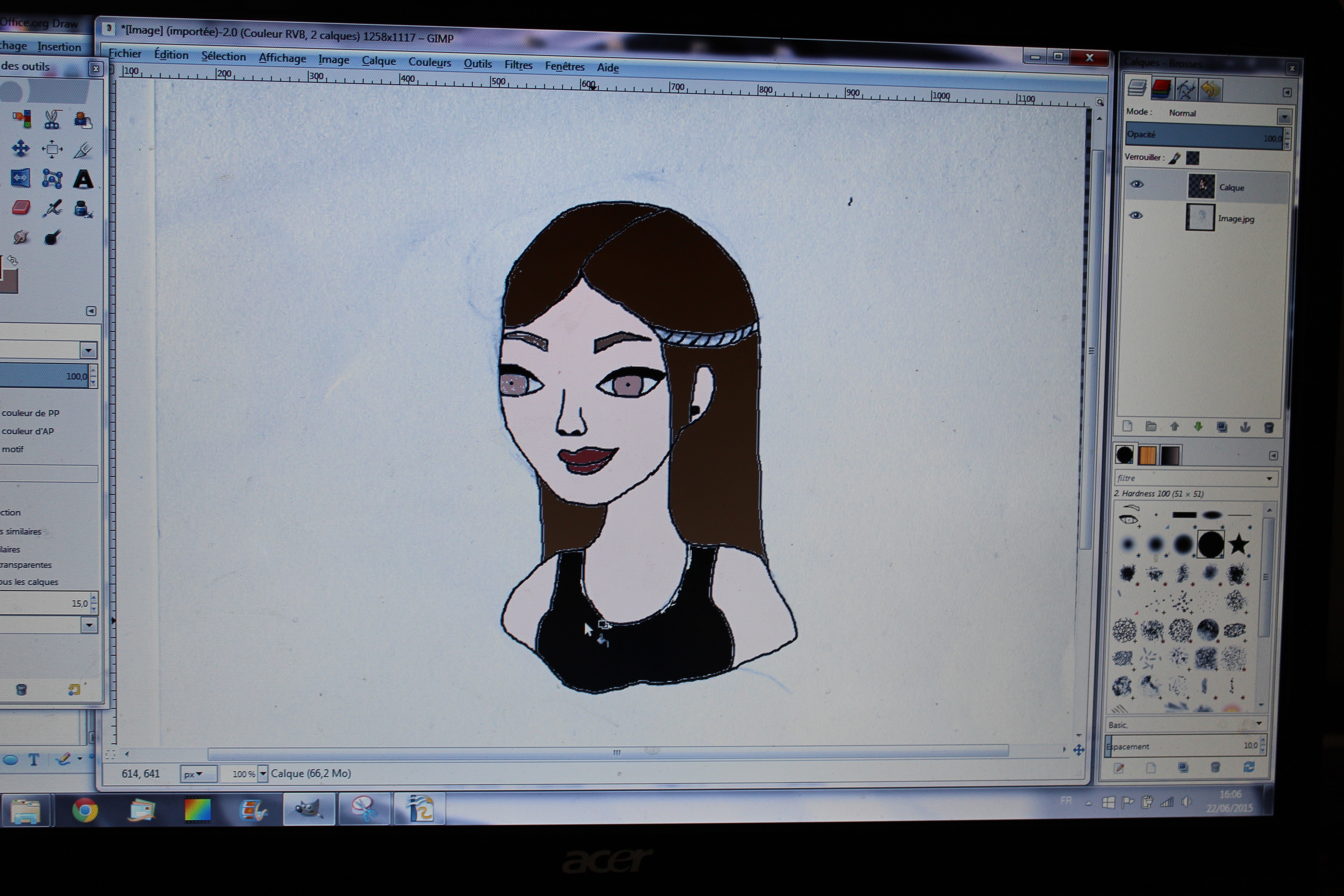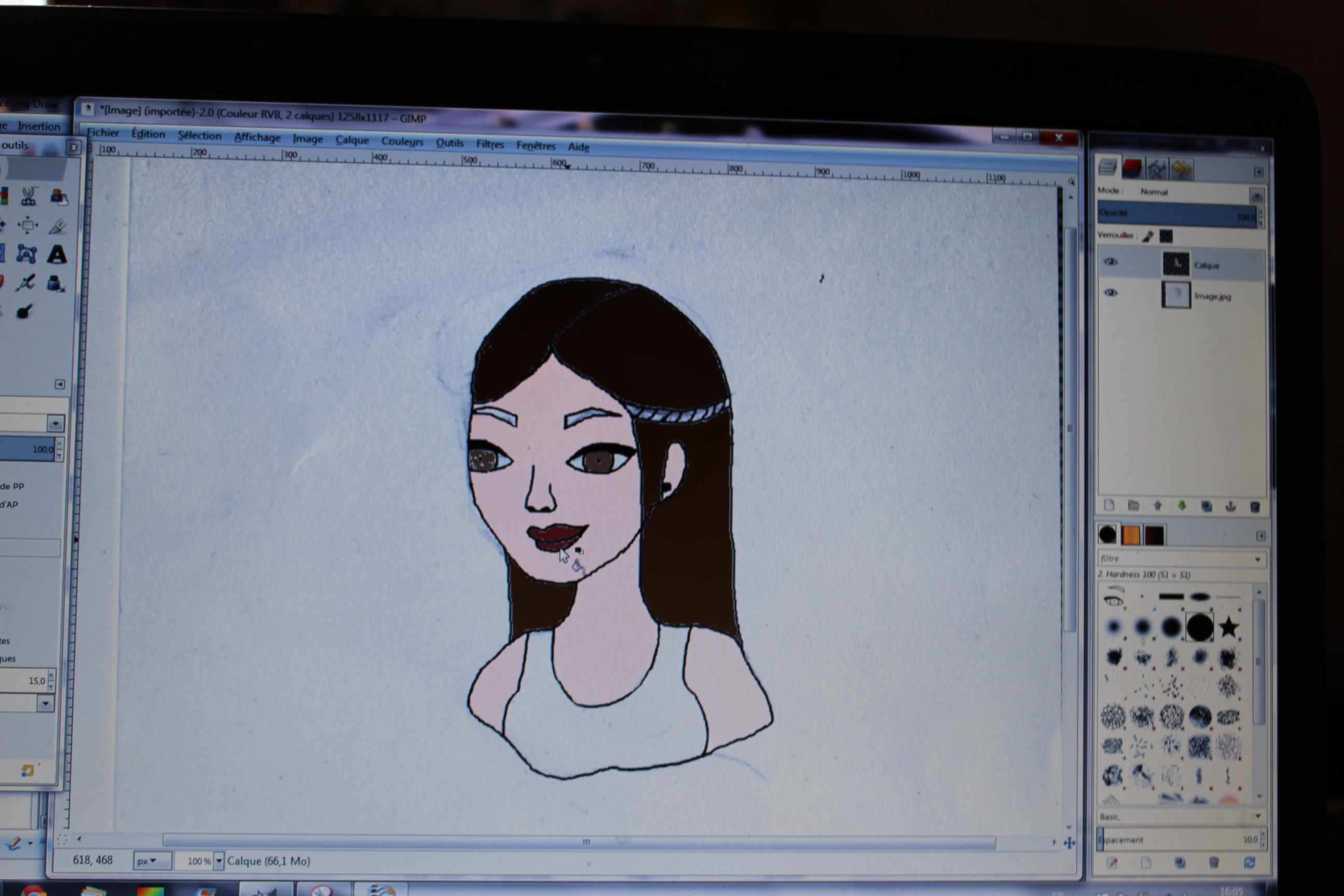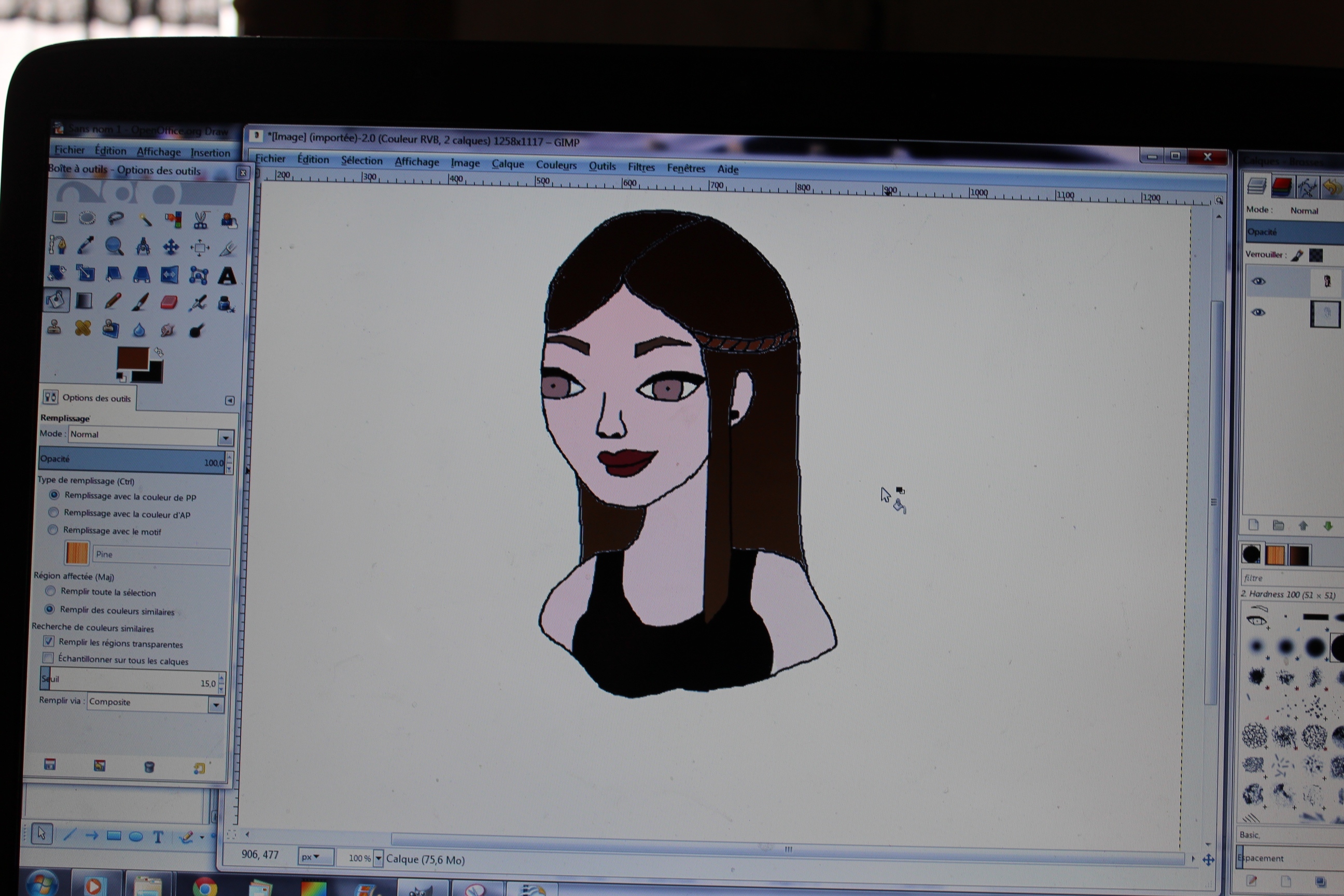 Mon logiciel est tout d’abord Gimp 2. J’ouvre le scanne et je place un calque.