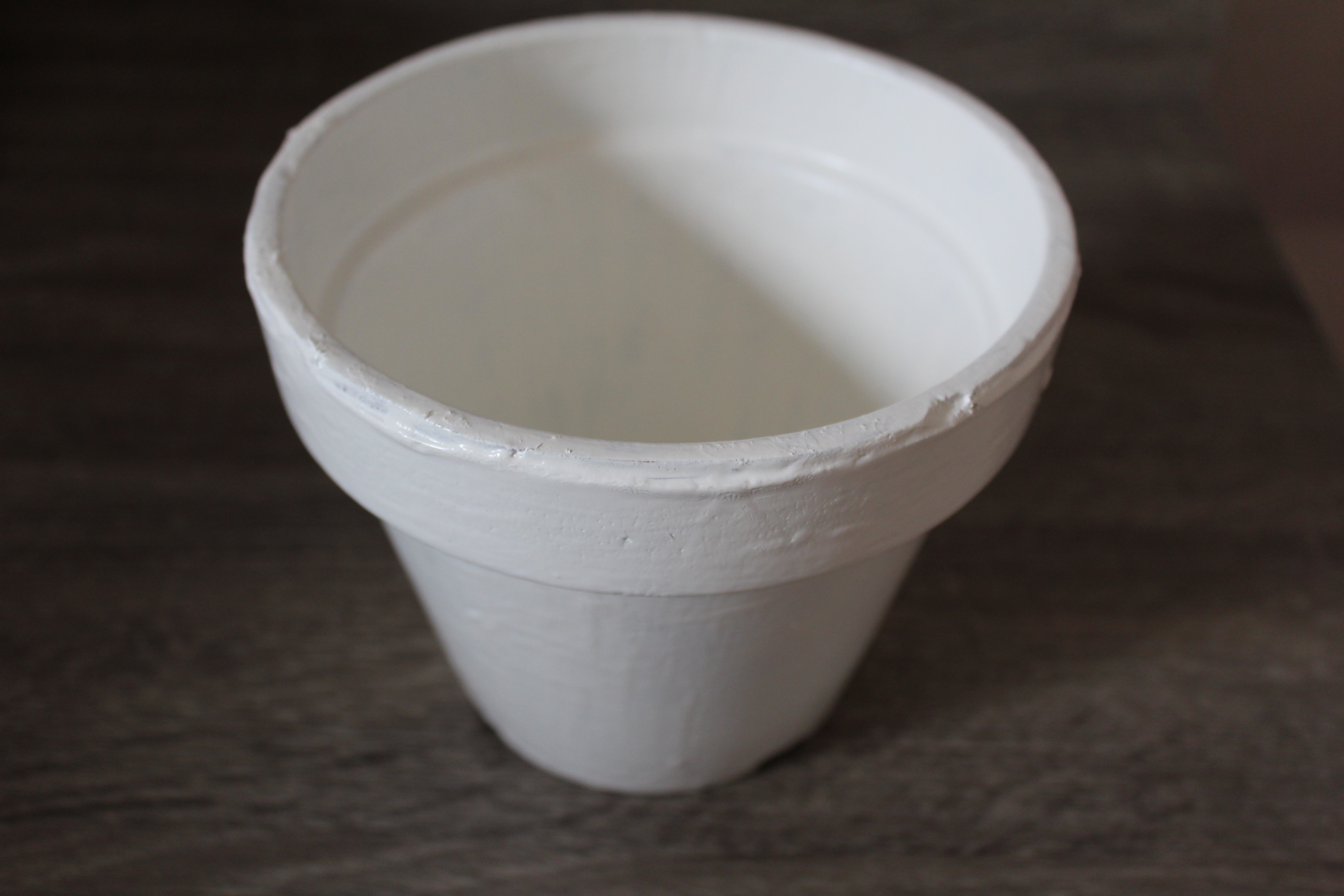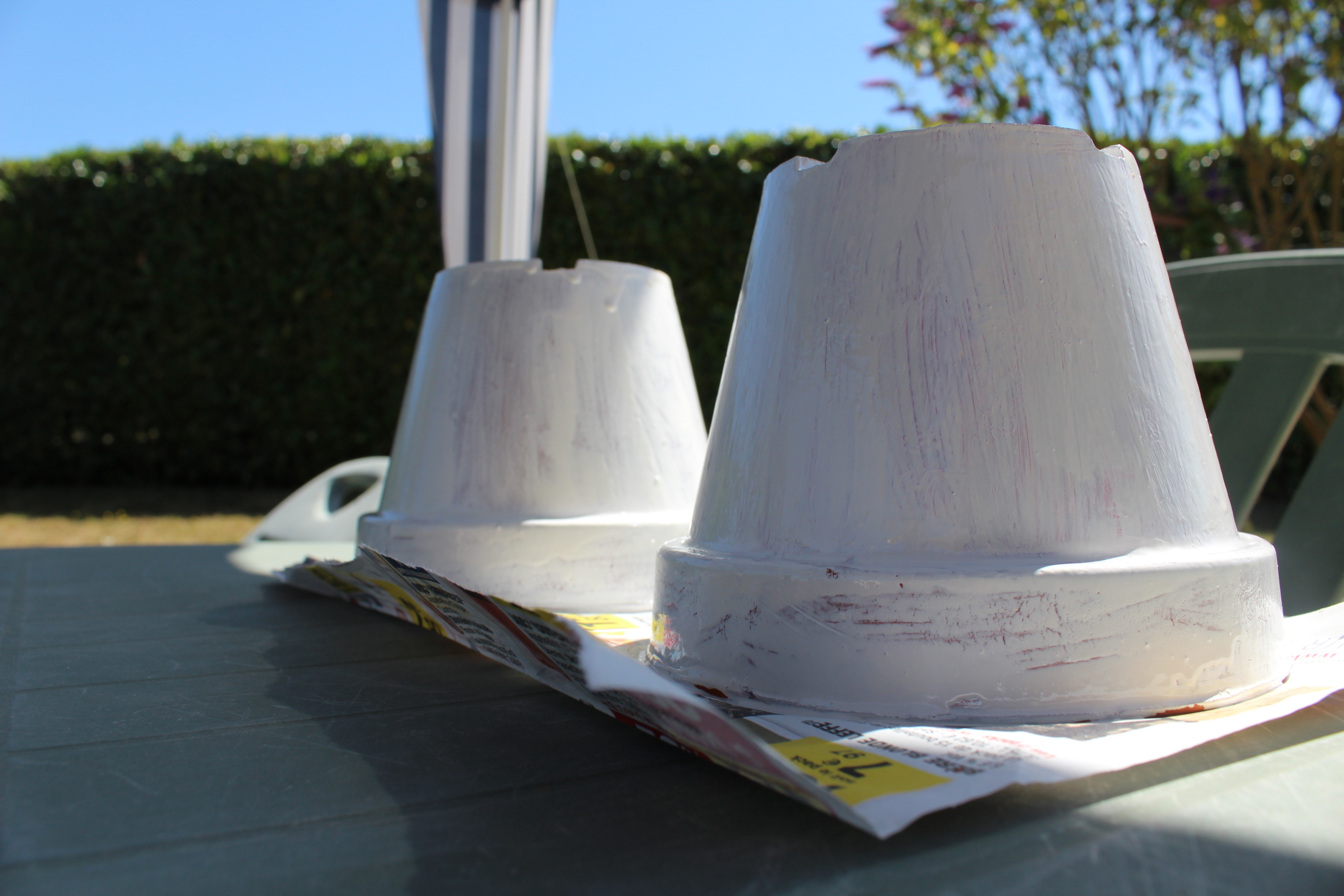 1.Faire une première couche de peinture sur le pot ( pas grave si elle est mal faite)
