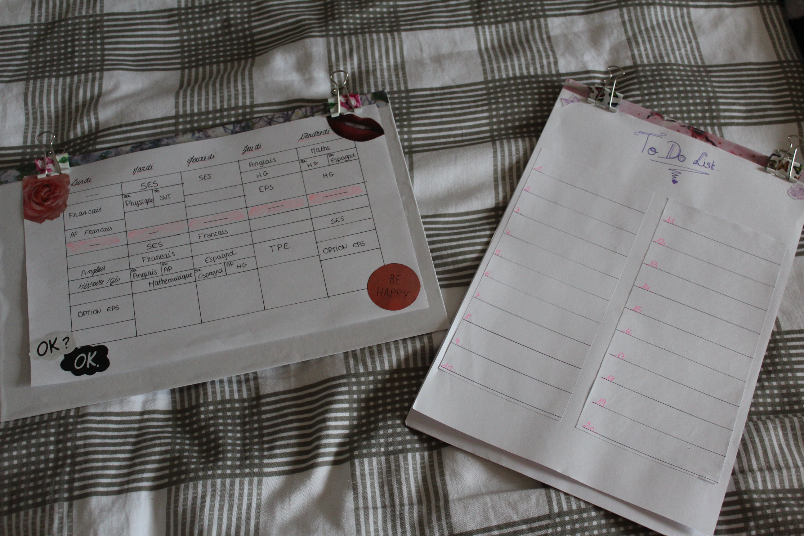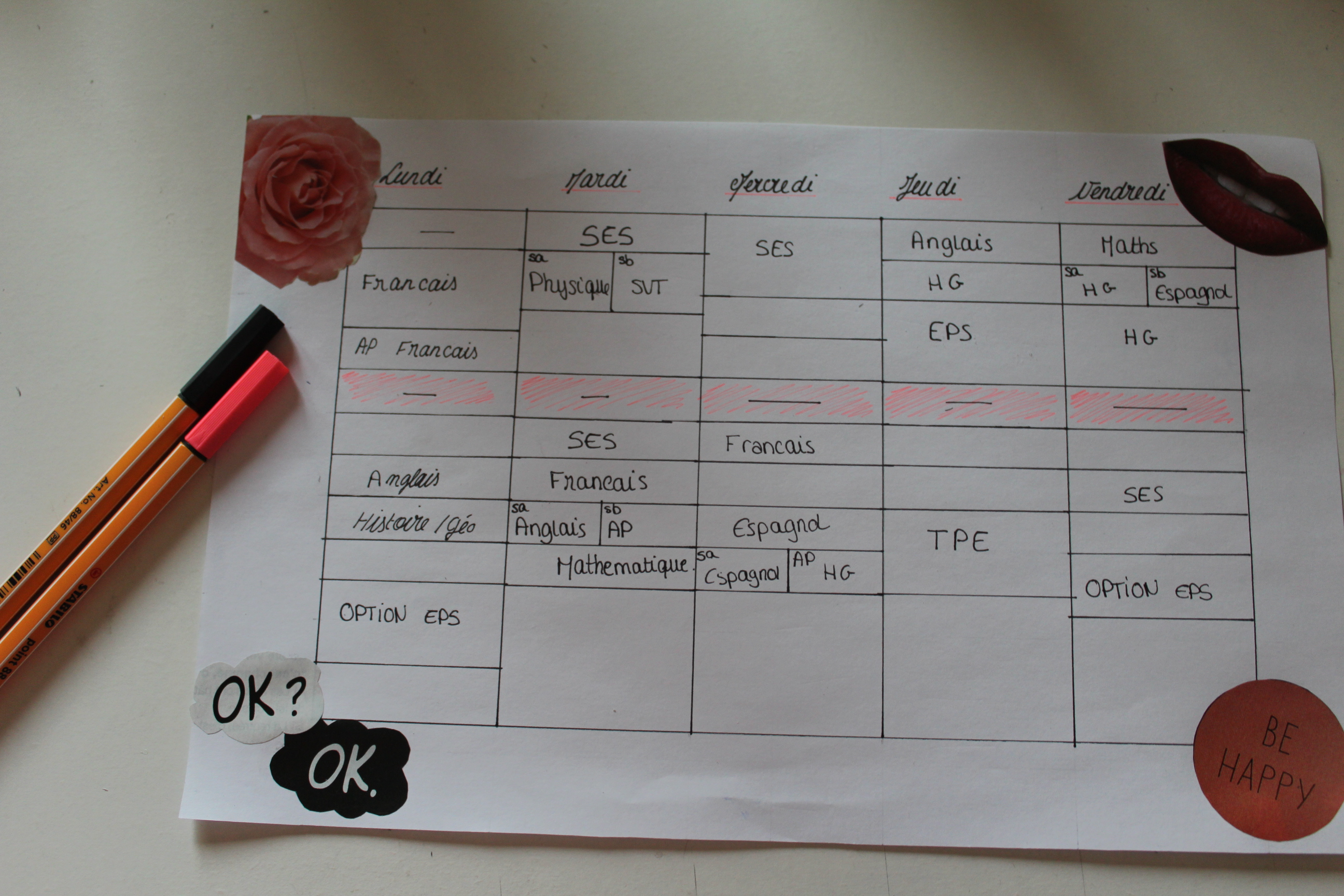 Ensuite je crée mon emploi du temps (et je rajoute des images que j’ai aimé sur les quatres coins)
