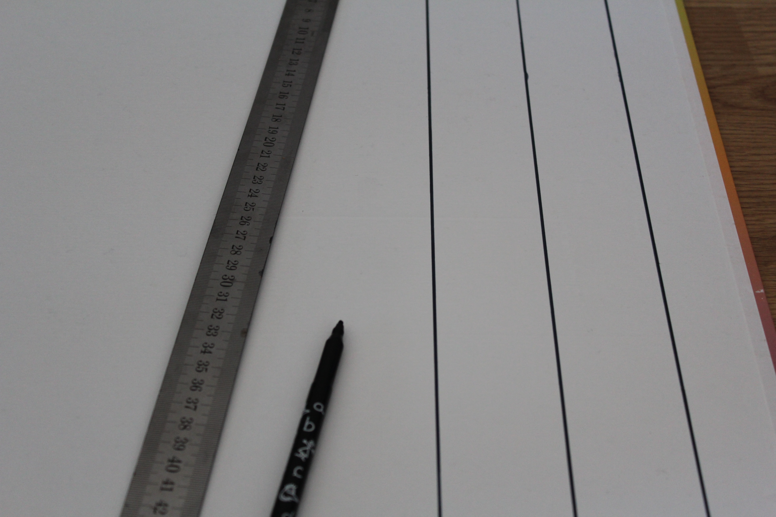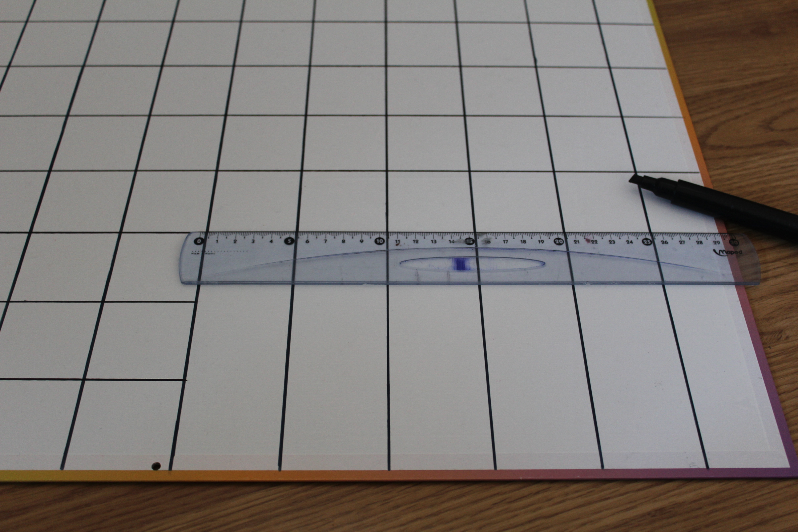 On viens tirer des traits au crayon à papier sur la face blanche du support tout les 5 cm