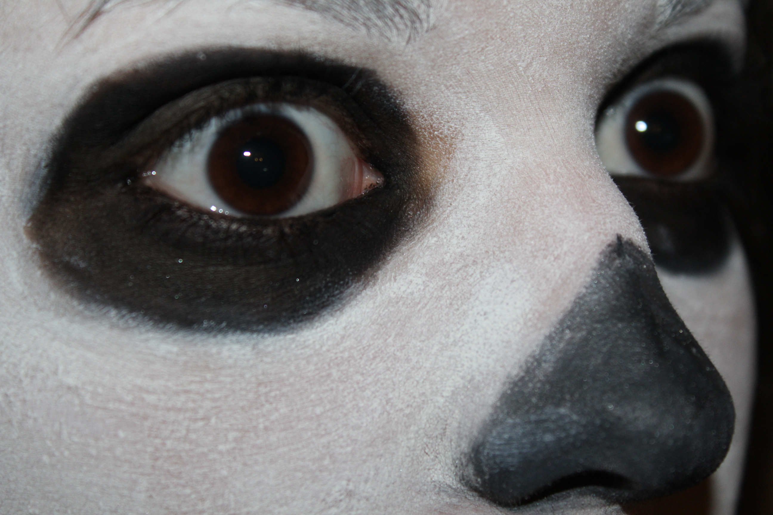Ensuite je viens faire le contour de mes yeux avec un crayon et je fais aussi le nez.
