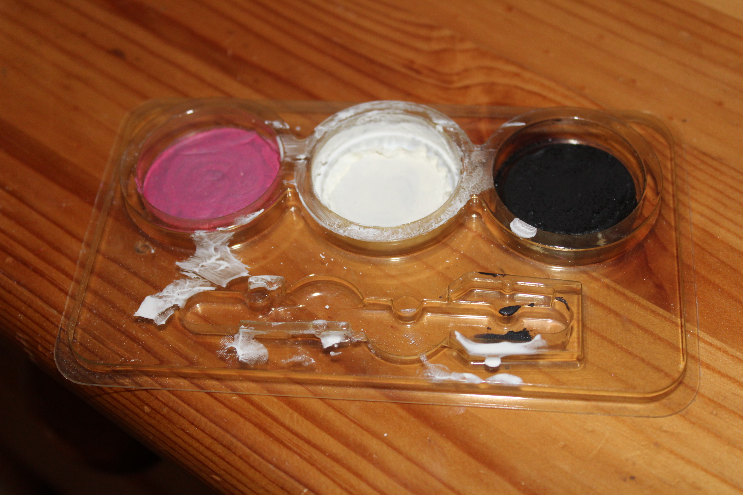 Tout d’abord je viens prendre de la peinture spéciale maquillage de couleur blanche et je viens unifier mon visage avec. Faite attention à ne pas faire le nez et le contour des yeux