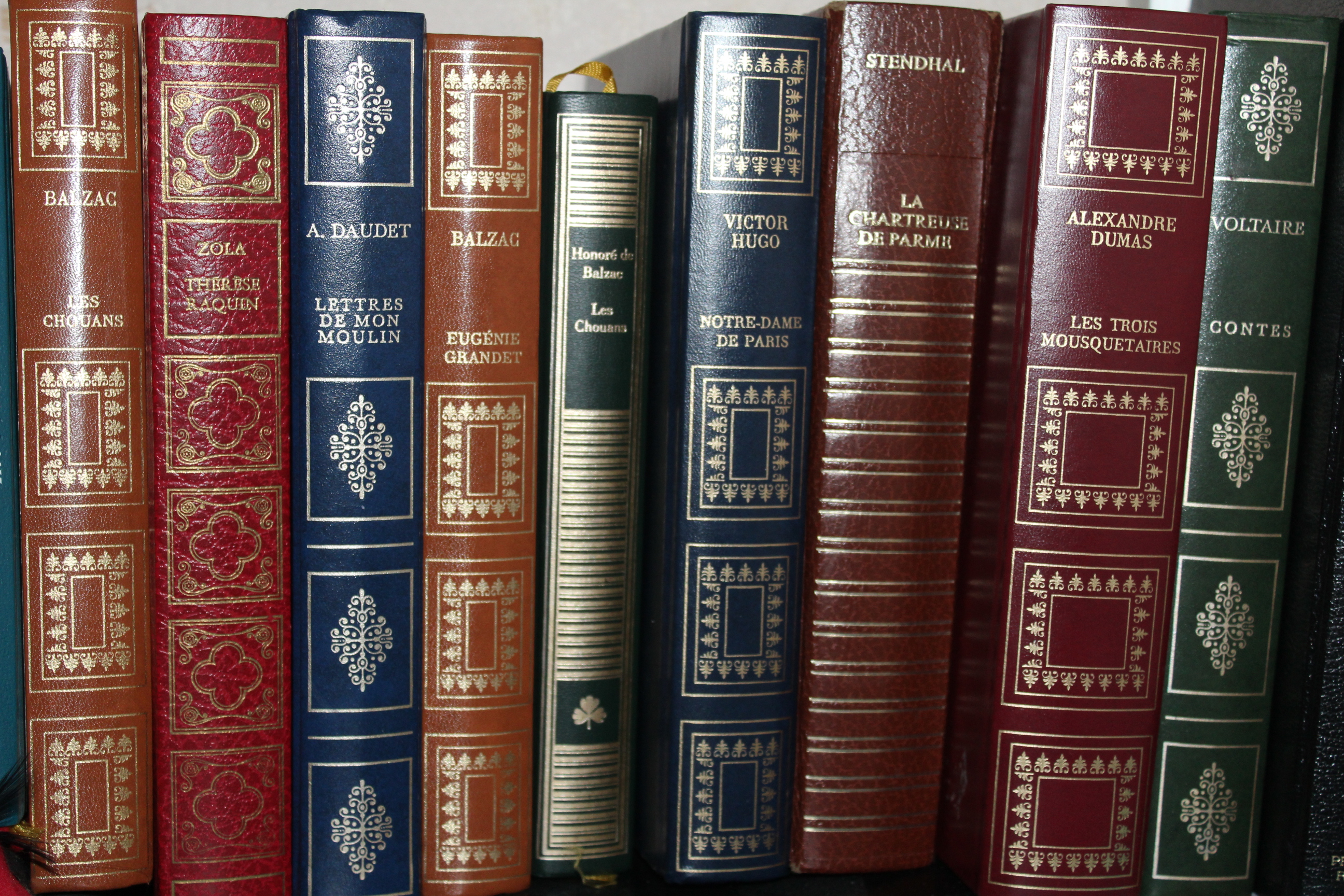 Des livres avec des couvertures classiques. Un peu style Bibliothèque de 1850 😉