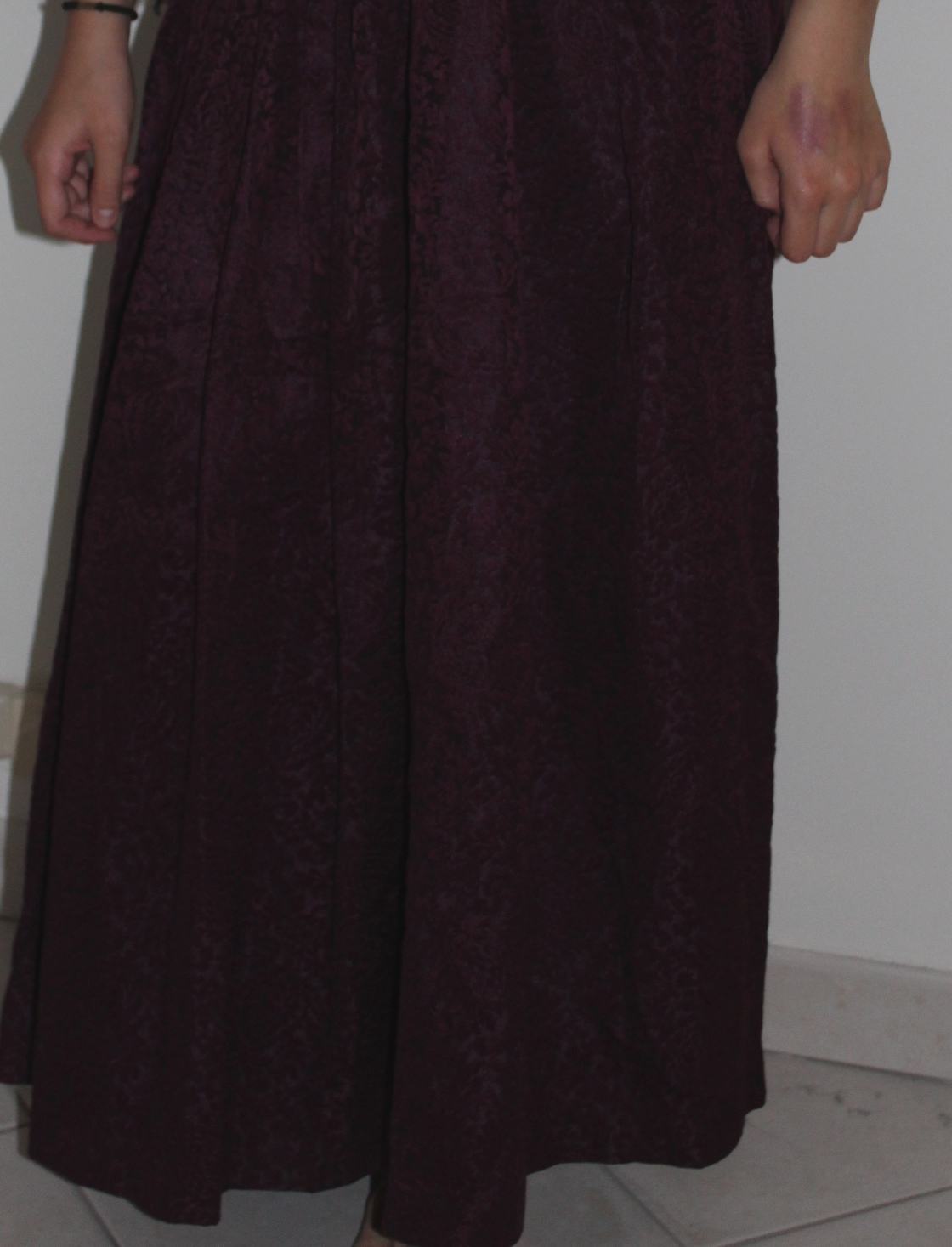 Elle se compose d’un jupe longue, qui était à la base un costume traditionnel d’Auvergne et d’un débardeur noir.