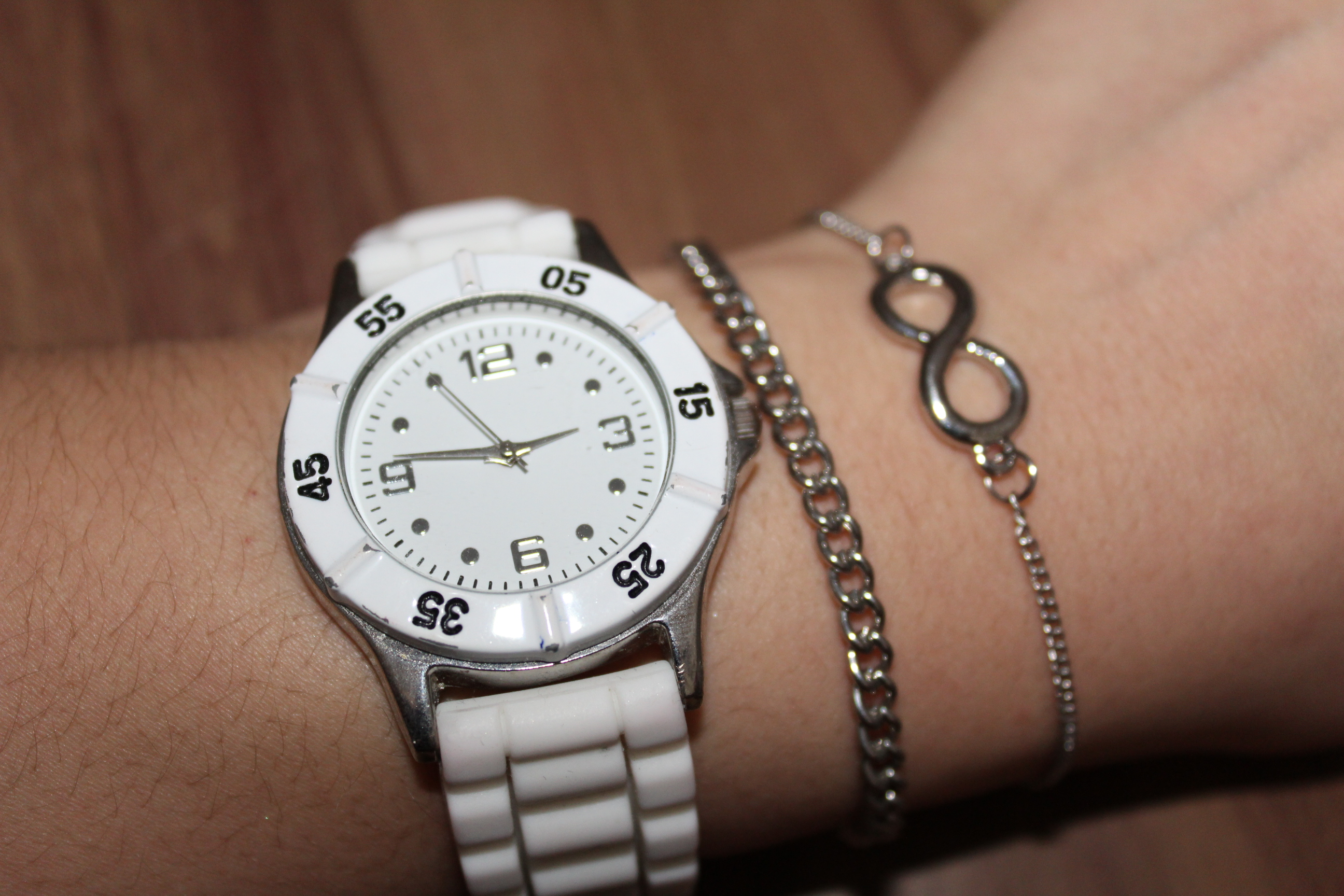 J’accessoirise avec une montre et deux bijoux argenté