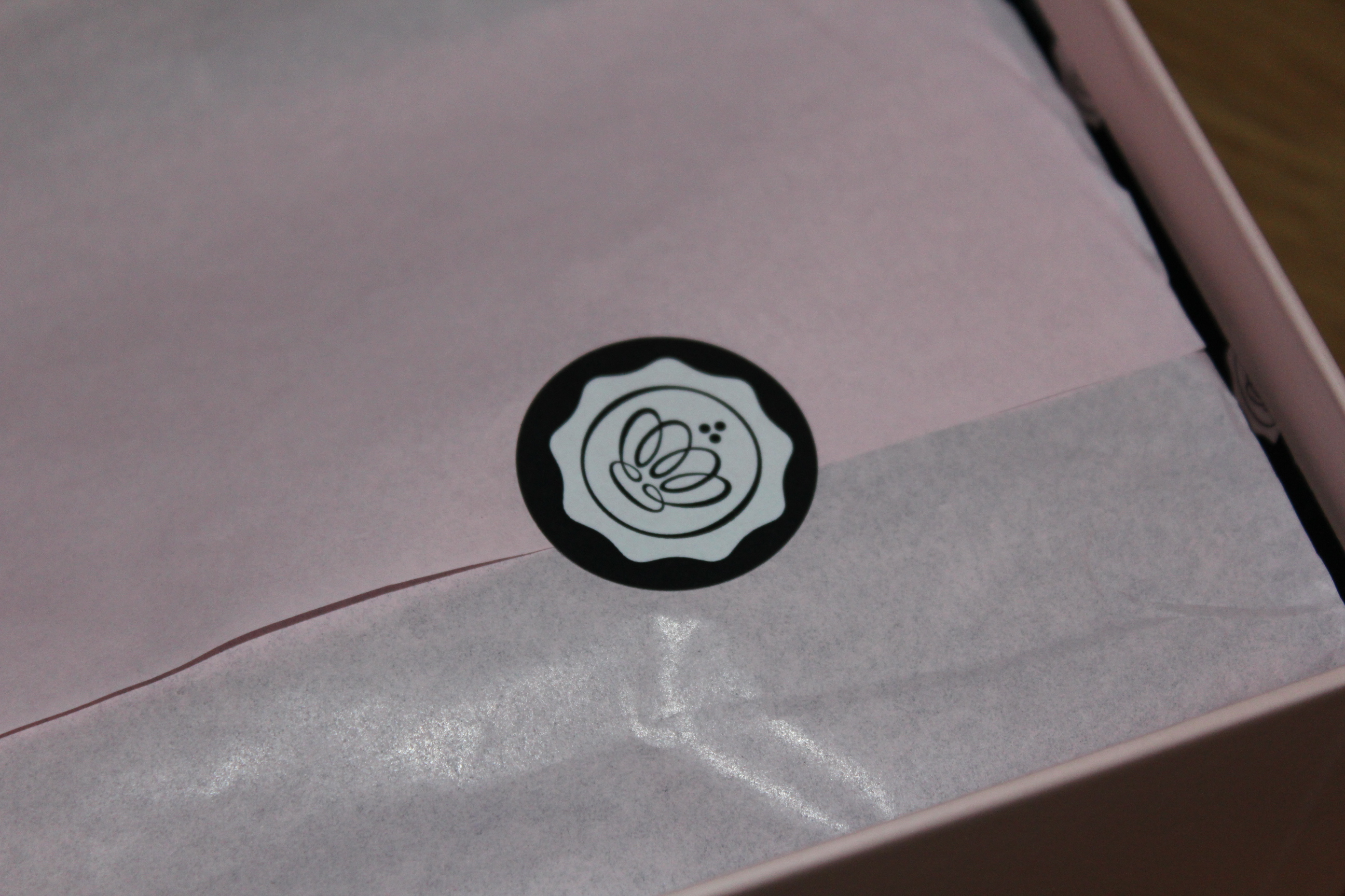 Ce mois ci, le thème est l’atelier du bonheur et le coffret reste rose basique, sans motifs.
