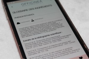 Ensuite vous pouvez cliquer sur un des contenants et l’application vous explique pourquoi il n’est pas bon pour votre peau et les quantités maximum autorisées.