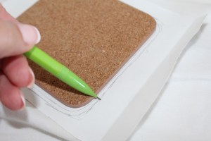 Je trace le contour de mon dessous de verre (attention : laissez des bordures plus grandes !)