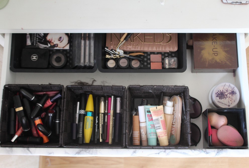 Voilà comment c’est rangé dedans, j’en profite pour vous faire un makeup tour ^^