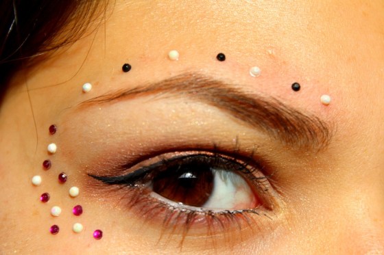 Pour les paillettes, comme je n’avais pas de colle à faux cils, je viens utilisé mon fixateur de sourcils.