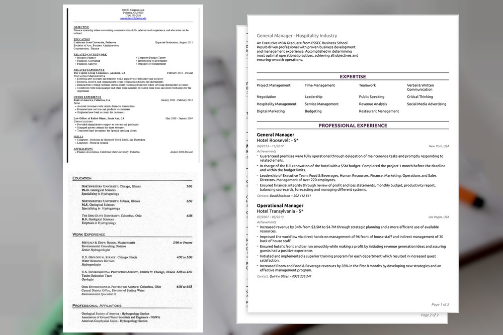 Ceux-là je crois bien que ce sont les pires. Outre le fait que vous avez intérêt à marquer vos pages et à attacher le tout solidement, personne ne prendra la peine de lire vos expériences de collège si vous êtes dans les études supérieures. Il faut savoir trouver ses priorités sur un CV. Demandez-vous qu’est ce qui est le plus important entre le job d’été que vous avez fait pendant deux mois cette année ou votre stage de 3ème dans l’épicerie en bas de chez vous ? Savoir faire le tri est très important car cela reflète une image d’organisation. Rappelez-vous que rien ne vous empêche de développer plus vos expériences telles quelles soit lors d’un rendez-vous.