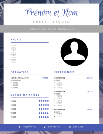 N’oubliez pas que votre CV doit être esthétique tout en restant quand même assez sobre. Le but n’est pas de le surcharger avec des tonnes de détail. Un fond, deux ou trois pictogrammes, deux couleurs dominantes max et hop le tour est joué.