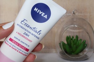 Après ma douche, je viens mettre ma crème Nivea Essentials sur la totalité de mon visage et mon cou.