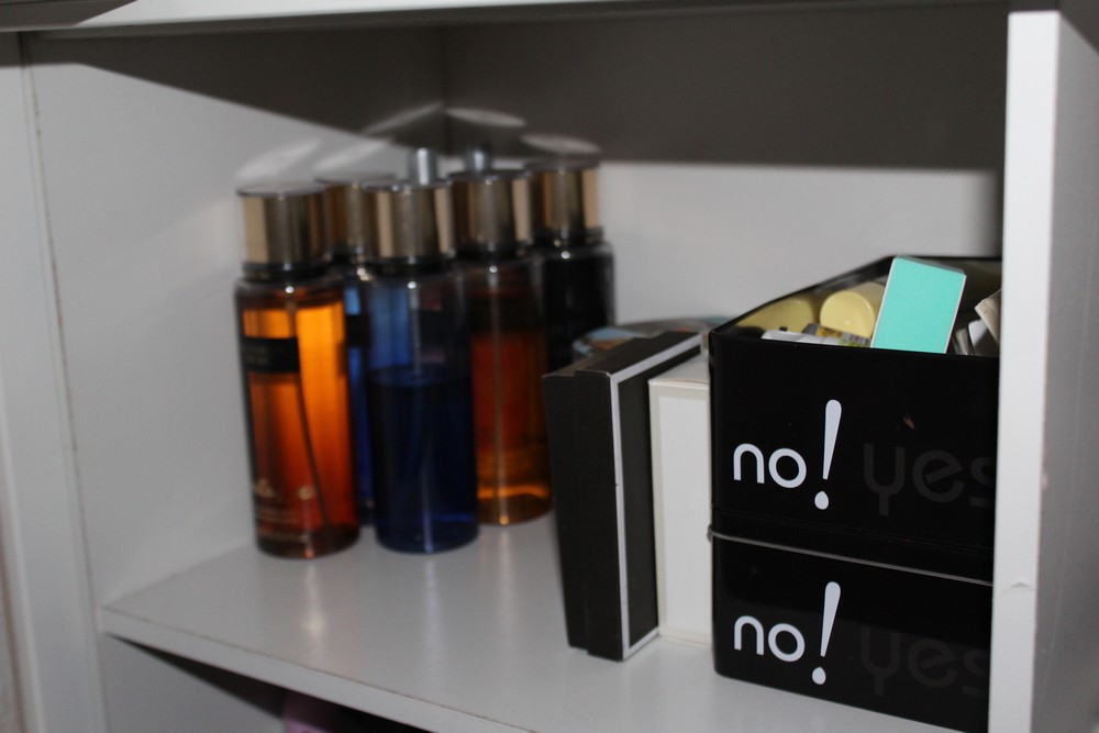 Ainsi qu’un caisson de deux compartiments pour ranger mes produits (vernis, produits phares…).