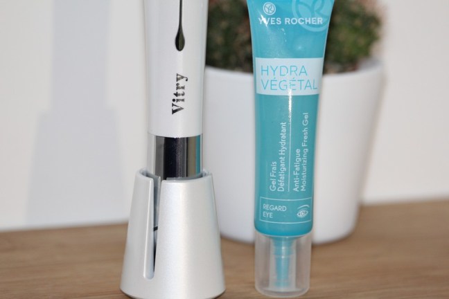 J’applique ensuite mon contour des yeux hydratant de chez Yves Rocher. Une fois par jour, j’utilise mon appareil massant de chez Vitry en complément. Il est composé de deux vitesses, je le mets donc sur la première et j’effectue des mouvements bien précis du coin externe vers le coin interne. Je passe ensuite à la seconde en effectuant aussi des mouvements circulaire dans le sens contraire des aiguilles d’une montre.