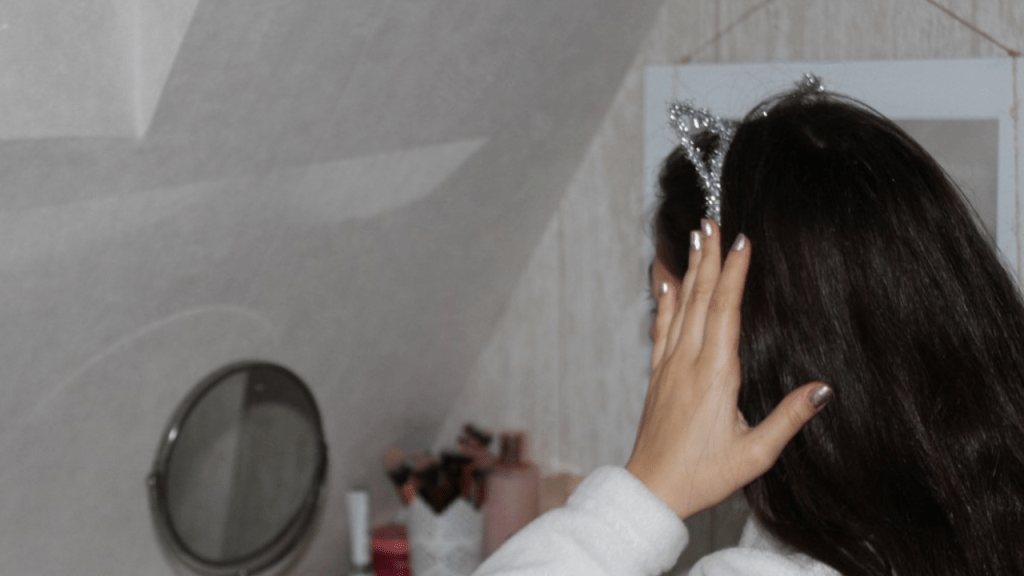 Puis je place un serre-tête avec des oreilles de chat pour tenir mes cheveux en arrière.