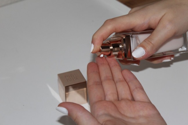 Enfin, j’applique ma crème lissante Givenchy sur la totalité de mon visage et sur mon cou en évitant le contour des yeux.