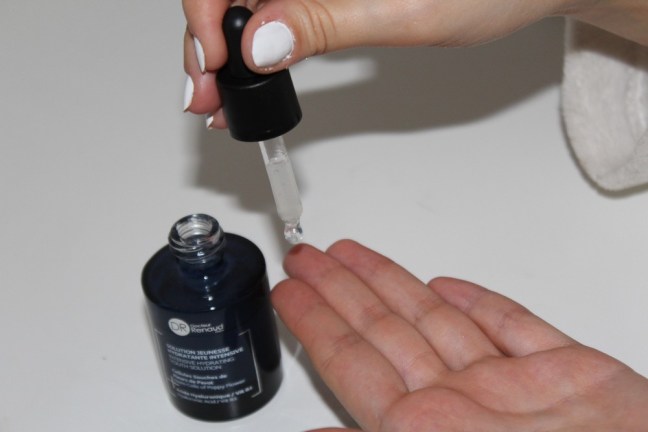 Suite à ça, j’applique mon sérum hydratation intense de chez Docteur Renaud sur l’ensemble de mon cou et de mon visage. C’est la première fois que j’utilise un sérum avant de mettre une crème de jour ou de nuit et je dois bien avouer que le résultat est vraiment super. Je laisse sécher 2 petites minutes avant de continuer.