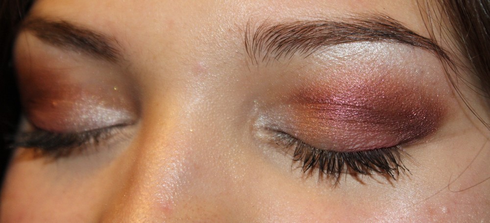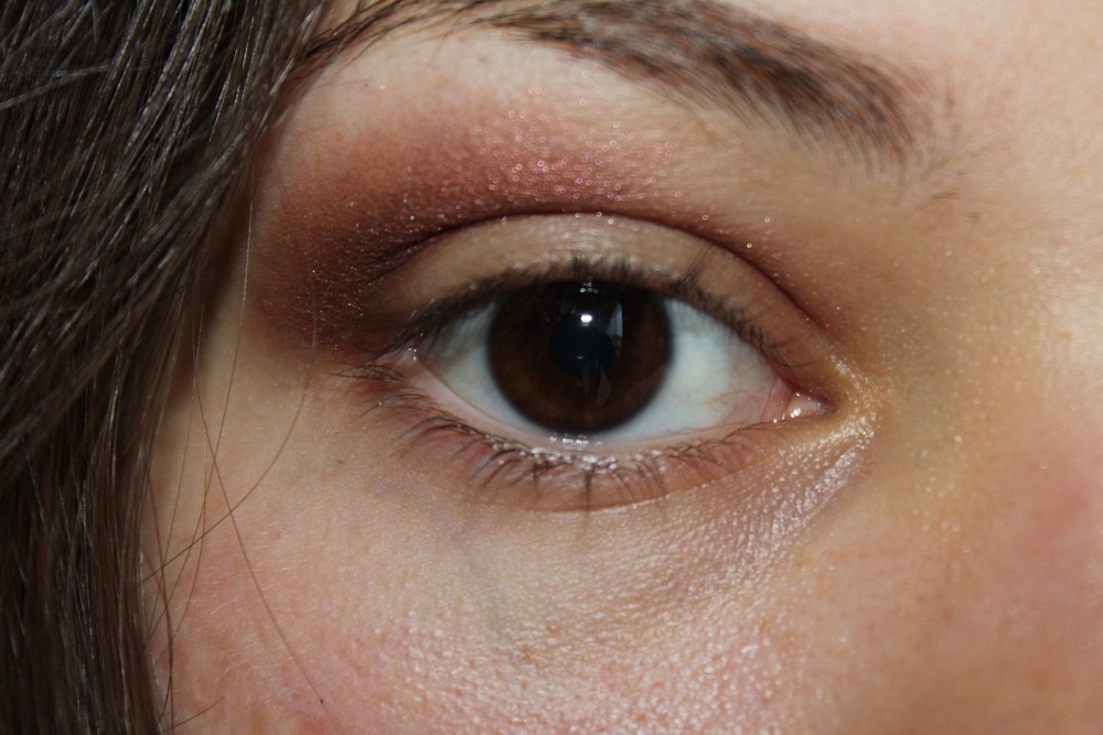 Je commence par creuser ma paupière avec le plus foncé des trois. Une fois creuser, le but est d’estomper au maximum pour que le maquillage ne soit pas non plus trop démarqué.