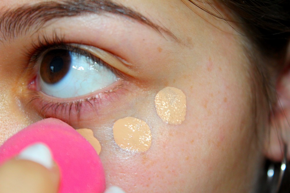 Par la suite, je viens appliquer mon fond de teint uniquement là où j’ai des rougeurs et sous mes yeux. Je l’utilise comme correcteur car je trouve que sa texture est assez couvrante sans pour autant pâteuse. Je l’applique au beauty blender ainsi qu’aux doigts.