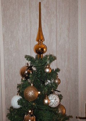 Coucou ! il est tout mignon et trÚs beau ! ici il est or et rouge cette année avec une touche de blanc, des gros bisous